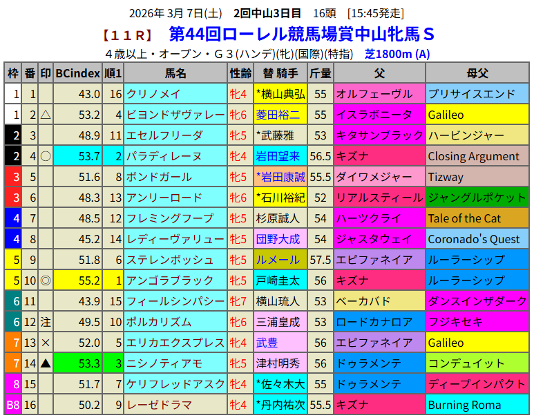 血騒馬(中山牝馬S・フィリーズレビュー)