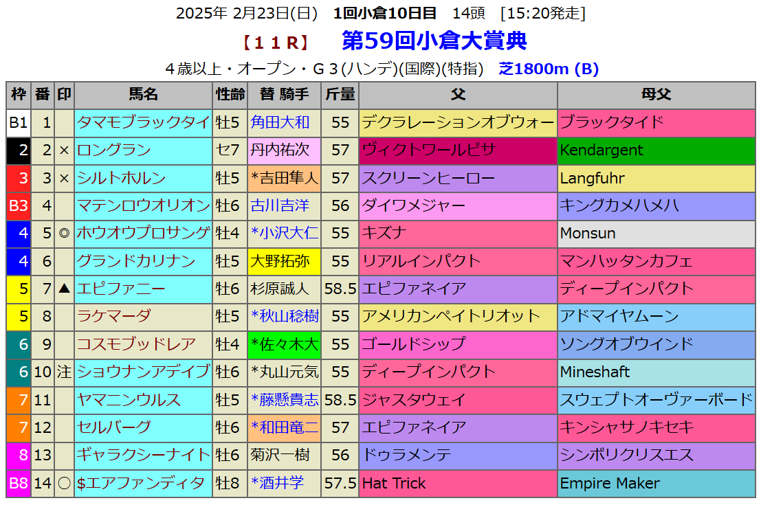 血騒馬(フェブラリーS、小倉大賞典)