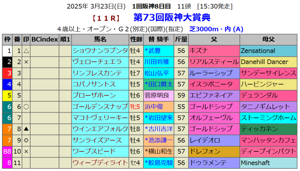 今日も重賞レースが二つです。阪神大賞典はBC-index対象外のコースですが、血騒馬的な予想です。