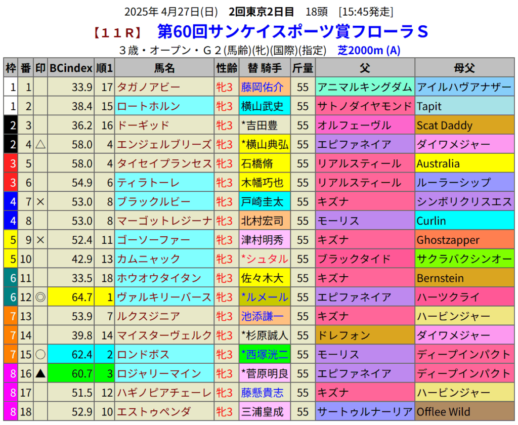 フローラSはオークス最終便でしょうか。とはいってもここの勝ち馬がオークスで活躍する事はここ数年はいないようです。