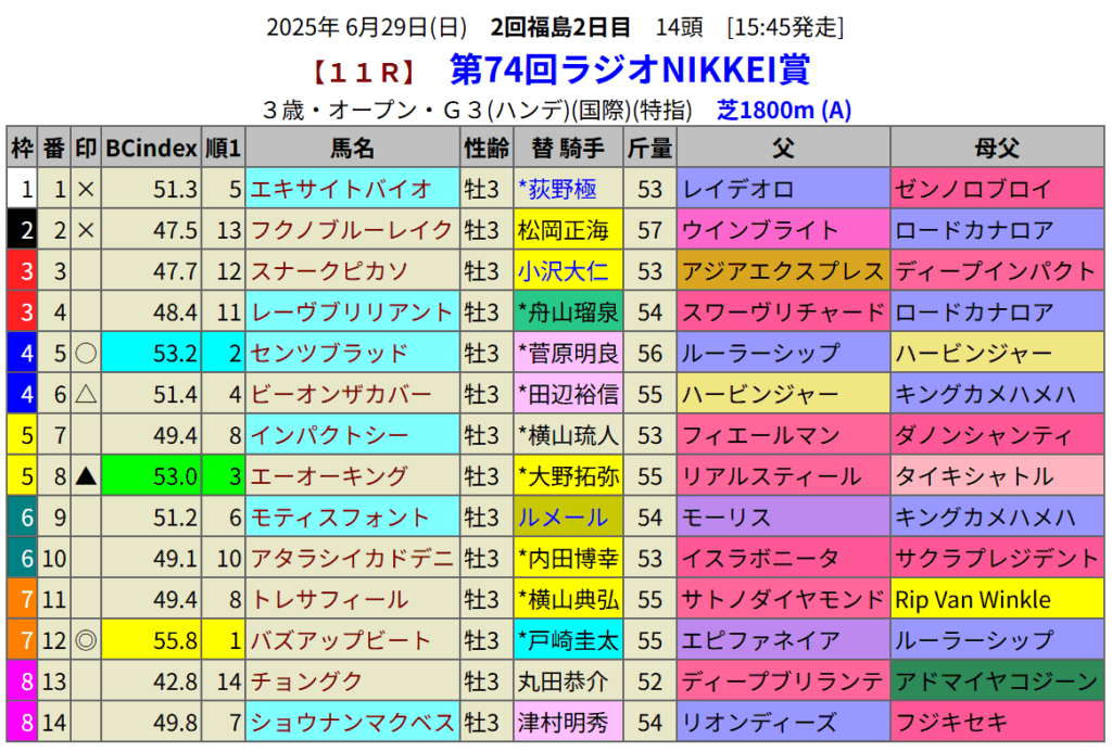 ラジオNIKKEI賞の血統指数予想