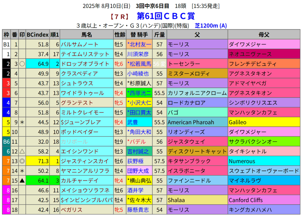 CBC賞の血統指数予想