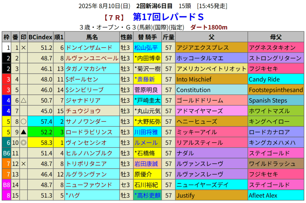 レパードSの血統指数予想
