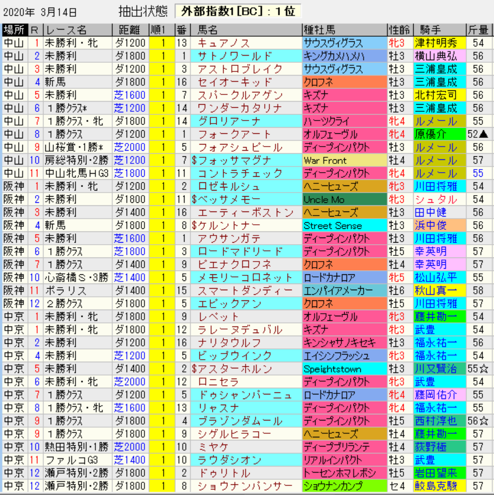 明日のBC-index1位馬を全て公開(TARGETがなくても見易い!)
