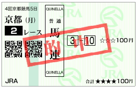 京都2R(1.3.2) 馬連17,190円 3連複10,310円