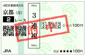 京都3R(4.1.5) 馬連1,640円 3連複10,530円