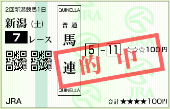 新潟7Rを勝ったBC-index1位馬キュリオスティーはデビュー戦では1番人気に推された馬です。前走二桁着順でしたが5戦目での勝ちあがりとなりました。この馬から人気上位4頭に流したら万馬券的中となりました。